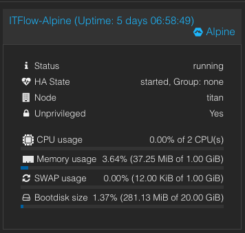 ITFlow is very light on resources for the most part. A modern virtual CPU, 2 GB of RAM and 10 GB disk is plenty. Before we had Jenkins and the develop branch, I used to run a PR Review instance on the oracle free tier. A fraction (1/8?) of a CPU core & 1 GB RAM running multiple ITFlow dev sites just fine.